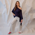 The Paty blouse is a perfect example of versatility and style combined. The oversized design, light material, and laser-cut details make it a unique and fashionable piece that can be worn in various ways.
